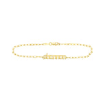 Bold sentiment, refined scale. This custom name bracelet is crafted in 14K gold with a sleek paperclip chain and a gothic-style nameplate that feels personal, expressive, and uniquely yours.
