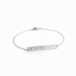 Custom back inscription view. Coordinates skinny bar bracelet in gold color. 14K Gold-Filled. Latitude longitude bracelet by lat & lo.