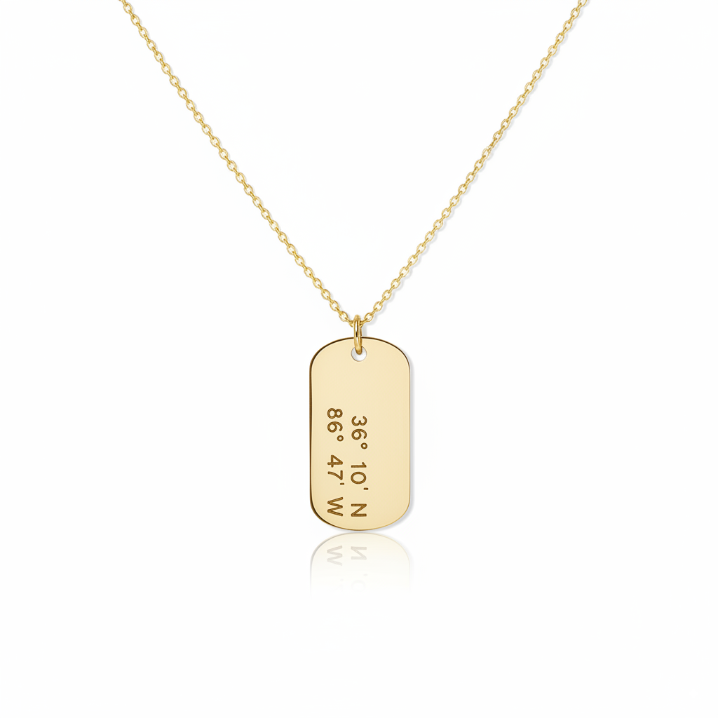 This custom engraved necklace showcases latitude and longitude coordinates of a cherished place close to your heart. Its smaller size makes it perfect for layering or wearing solo.