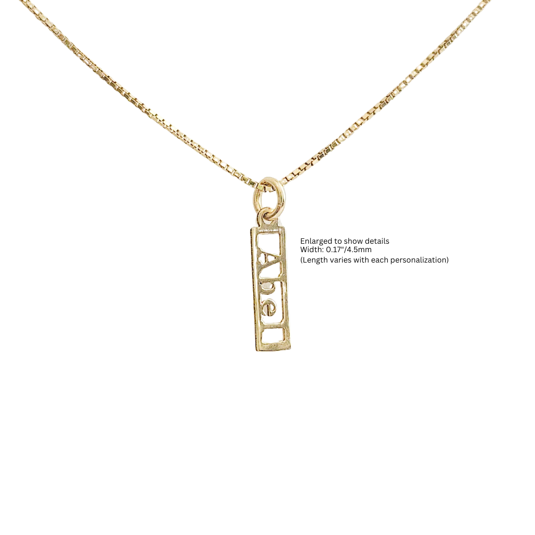 Dimensions of the pendant charm vary depending on the length of your personalization. Width: 0.17/4.5mm