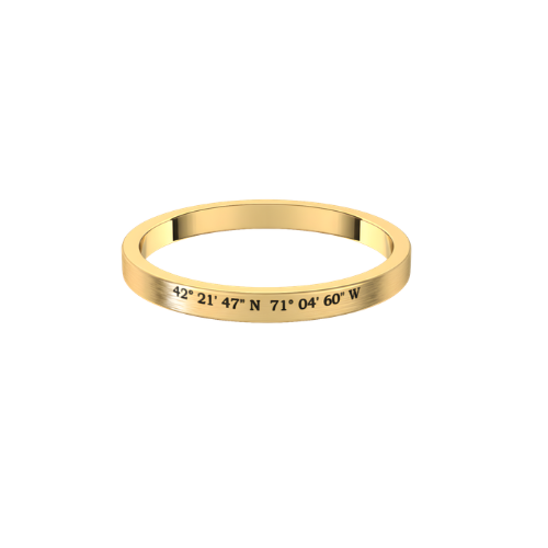This 2mm wide flat band is engraved with the latitude and longitude of your meaningful location or custom text that tells your story. Crafted from solid sterling silver, it offers a timeless, understated look designed for everyday wear.