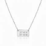 This elegant necklace features the coordinates of your meaningful location on Earth, accompanied by an optional personalized inscription on the reverse side.