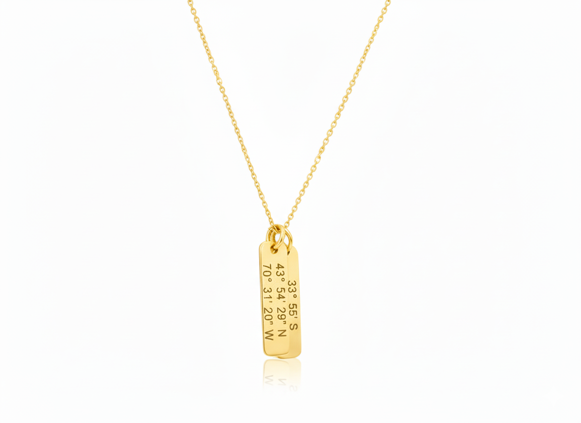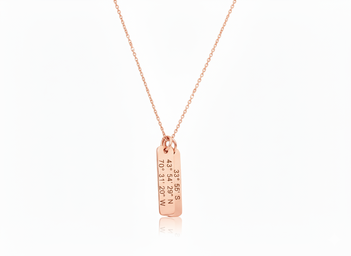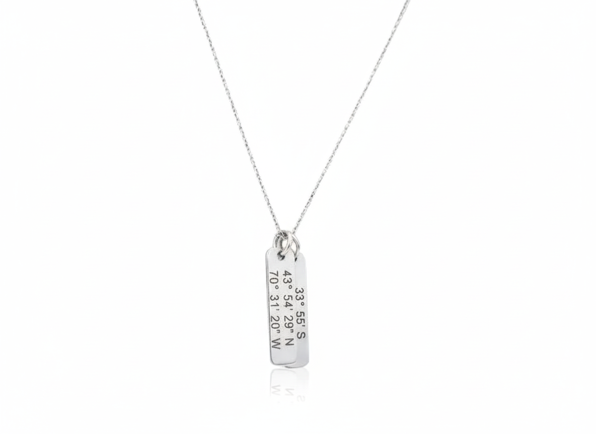 Celebrate a meaningful moment and location with our Wayfarer coordinates necklace. Featuring two elegant charms, each beautifully engraved with the precise latitude and longitude coordinates of your cherished place.